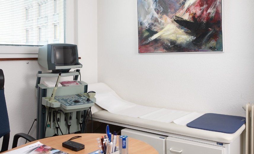 Jedes Untersuchungszimmer ist mit einem modernen Ultraschallgerät ausgestattet, so dass wir direkt nach der körperlichen Untersuchung ohne Verzögerung im selben Raum die Ultraschalluntersuchung durchführen können.